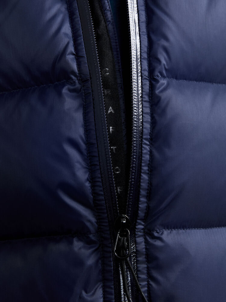 Här är ADV Explore Downacket Dunjacka som är aDV Explore Down Jacket är en varm dunjacka utvecklad för vinteraktiviteter i riktigt kalla förhållanden. Jackan är gjord av återvunna material och har hög krage för extra skydd mot kyla, vattenavvisande 2-vägs dragkedja framtill, två sidfickor med vattenavvisande dragkedjor, innerficka med dragkedja, justerbar dragsko nedtill och i huvan samt muddar i ärmsluten som skyddar mot kall vind. Detta är vår varmaste jacka och ett perfekt val när du vill vara varm på vinterfjället.