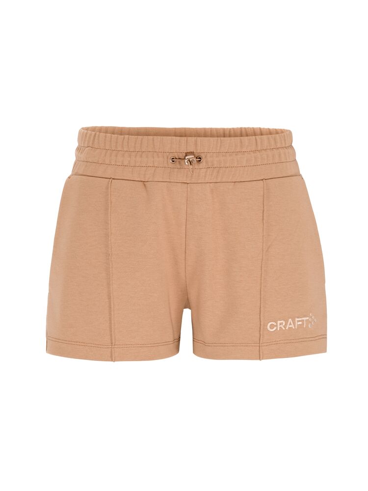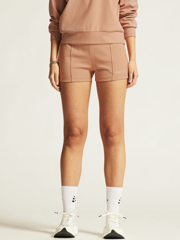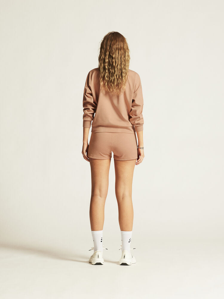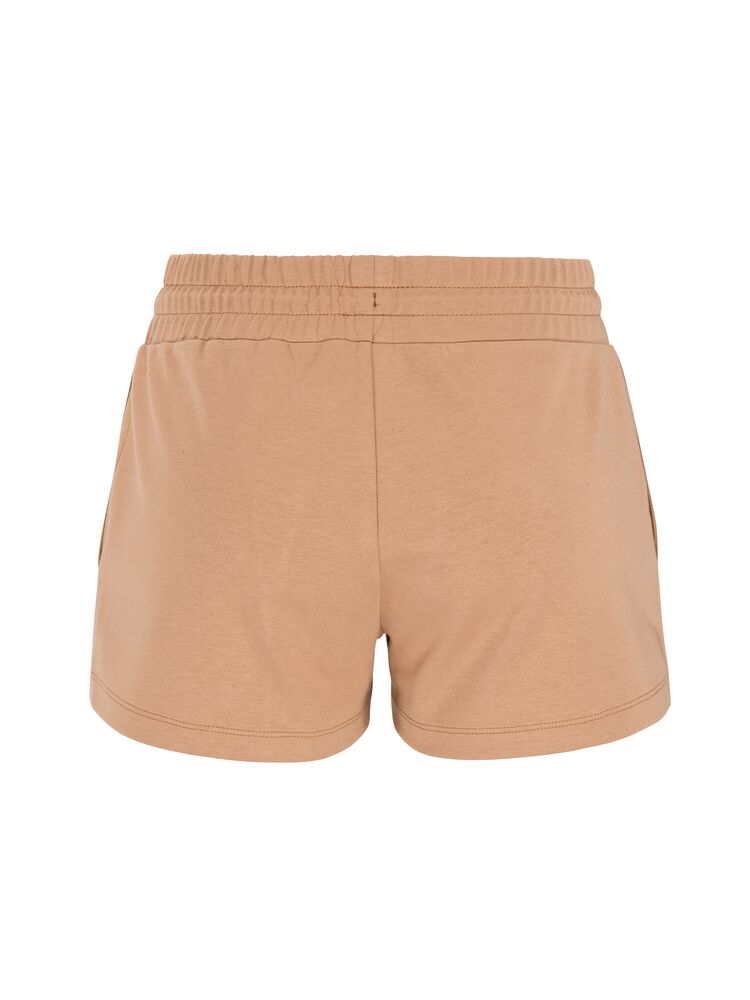 Detta bekväma och stilrena plagg är gjort av ett premiumtyg med slät bomullsutsida och insida av mjuk polyester. Resultatet är svettisshorts med hög komfort som passar perfekt till avslappnade stunder i vardagen. Plagget har bred resår i midjan för optimal komfort, två sidfickor och stickade insnitt på benens fram- och baksida. En minimalistisk design gör att shortsen enkelt kan matchas med en mängd olika vardags- och träningsplagg. Broderad logo på vänster ben förstärker plaggets premiumkänsla.