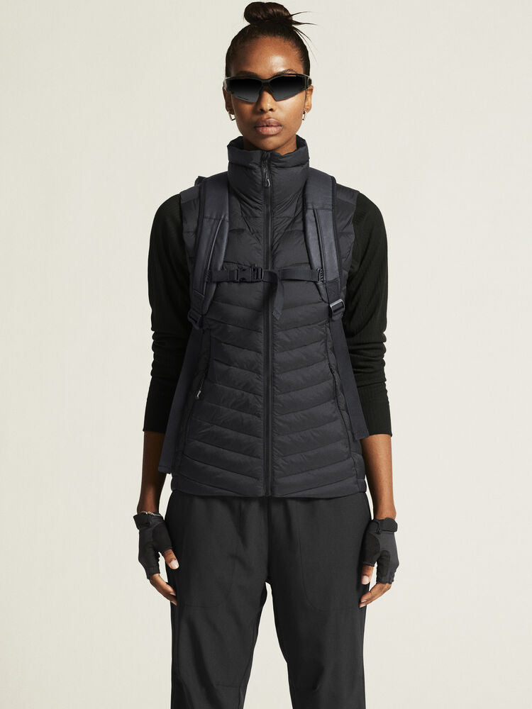 Denna mångsidiga dunväst har en tunn och lätt 90/10-dunvaddering som ger exceptionell värme i förhållande till vikt. Oavsett om du promenerar genom stan en kylig vintermorgon eller skidar genom gnistrande vinterfjäll ger västen den isolering du behöver för att hålla dig varm och skön. Västen har dessutom ett vattenavvisande yttermaterial med ripstop-konstruktion för optimal funktion och slitstyrka. Plagget är även utrustat med två sidfickor med dragkedja för säker förvaring av nycklar, mobiltelefon och andra viktiga prylar. Kan enkelt packas ned i ena sidfickan, en packpåse eller ryggsäck och funkar både som ytterplagg i mildare vinterförhållanden och som isolerande mellanlager under riktigt kalla dagar.