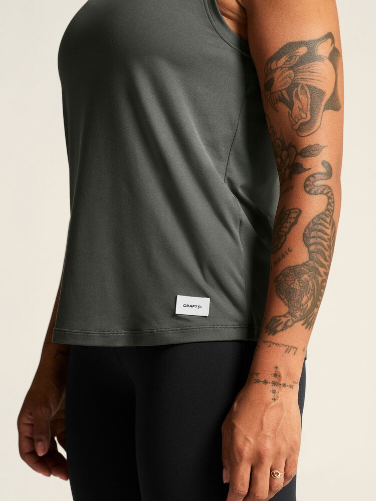 Detta mångsidiga träningsplagg är sytt i ett stretchigt polyestertyg med en finborstad, sammetsmjuk yta som ger en lyxigt mjuk känsla mot huden. Linnet har även racerback-konstruktion och rundad nederkant för en feminin siluett. Med en tidlös design är detta bekväma plagg ett perfekt val för såväl vardagsbruk som intensiva pass på gymmet.